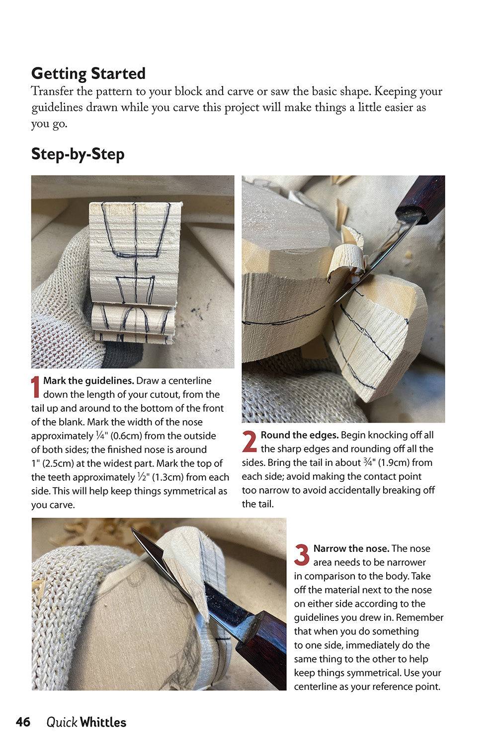 Get started in caricature carving with this party of beginner-friendly whittling projects! An excellent place to try your hand at carving adorable caricatures and learn how to capture their unique traits – from exaggerated facial features to expressive, googly eyes – Quick Whittles offers 16 portable projects you can carve in one sitting or even on-the-go. Featuring detailed guidance that breaks down complex techniques into simple and achievable steps, every easy wood carving project includes step-by-step instructions, coordinating photography, painting and finishing tips, and full-size patterns. From a PB&J-inspired whimsy and a folk art Santa ornament to a friendly narwhal, cute caterpillar, turtle wheelie toy, and even a face inside of a golf ball, each project conveys a charming emotion and personality that’s sure to delight and offer satisfied smiles upon their completion. Also included is an insightful opening section with overviews on carving basics, such how to hold the knife, make basic cuts, work with the grain, safely sharpen your knife, and how to paint your finished project.